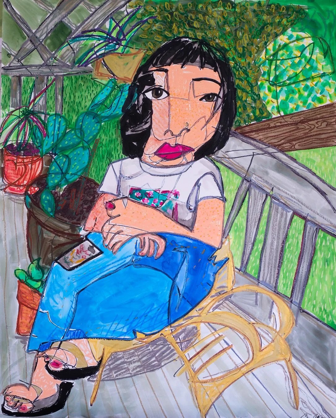 40” x 32” ink, marker and oil pastel on board